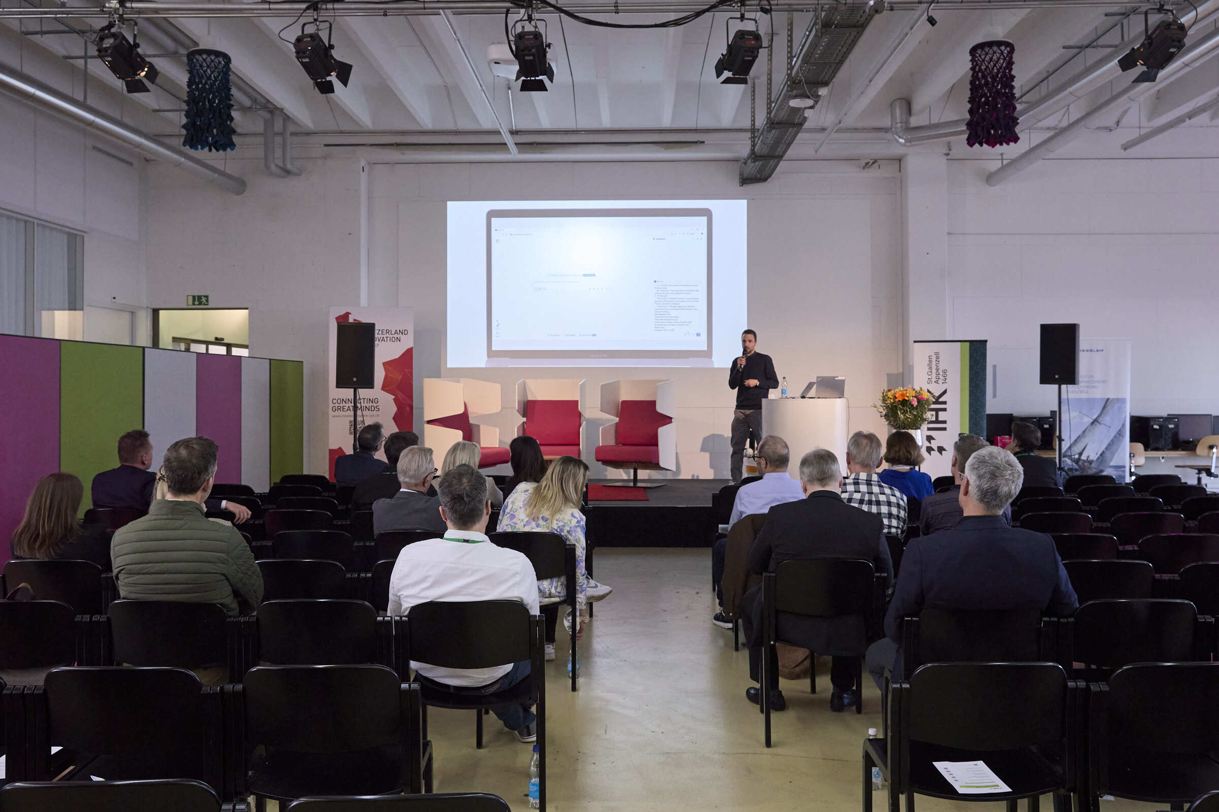 Auch heuer stand das Innovationforum des Switzerland Innovation Park Ost und der IHK St.Gallen-Appenzell im Zeichen von KI: Unter dem Motto «Künstliche Intelligenz – Vom Tool zur Transformation» wurden am 26. Februar inspirierende Keynotes, interaktive Breakout-Sessions und offene Diskussionsrunden geboten. Fotografiert für den LEADER im SIP Ost hat Rebekka Grossglauser.