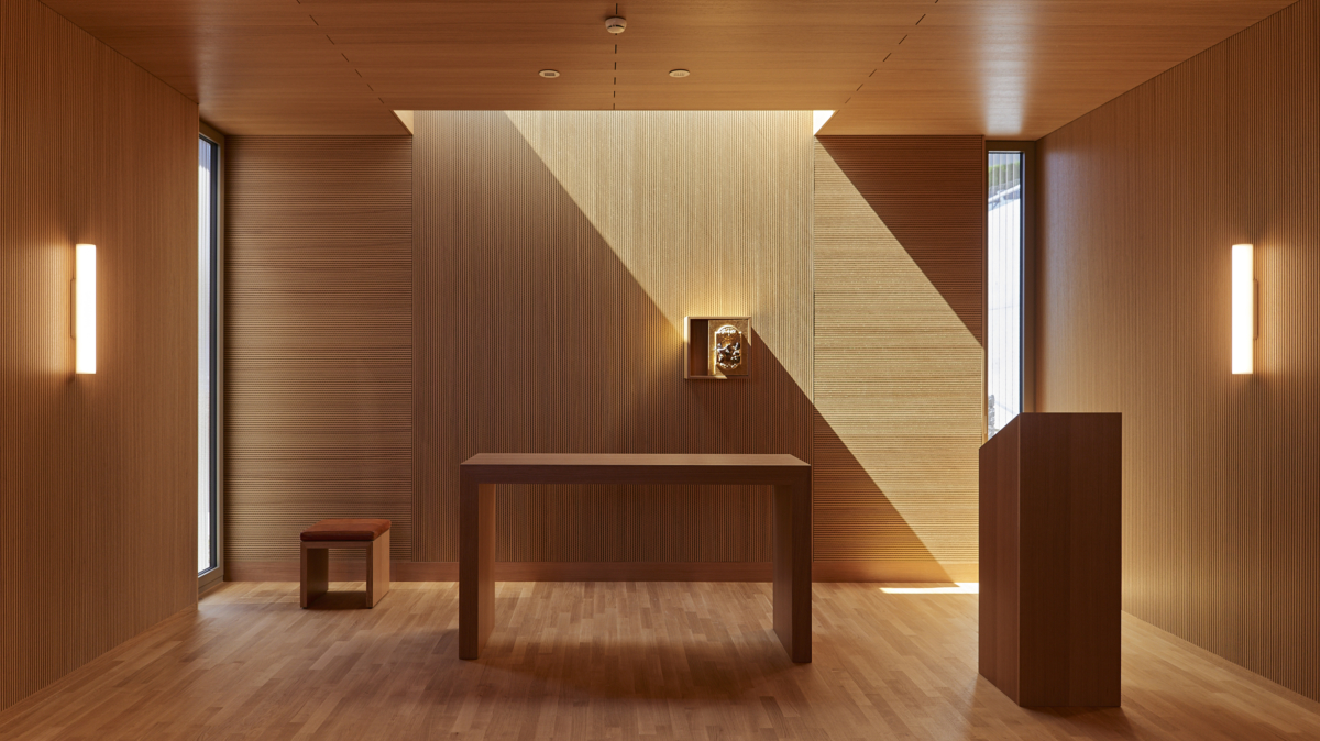 Auf einem kleinen Vorplatz mit Panoramablick empfängt eine Statue des Heiligen Franziskus die Bewohnerinnen und Besucher und lädt zum Eintreten ein. Von der Eingangshalle aus gelangt man in die Kapelle, die mit einem eindrücklichen Spiel aus Licht und Schatten fasziniert und vollkommen in Holz ausgekleidet ist.