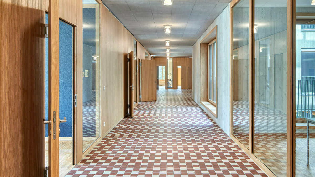 Beispiel Sekundarschule Burghalde, Baden Um die gewünschte warme Atmosphäre der Räumlichkeiten zu unterstreichen, wurden sämtliche Türelemente mit Eiche furniert. Es handelt sich dabei um UniStar Schall- und Klimaschutztüren und SoundStar Schallschutztüren. Zudem wurden nur Hölzer aus ökologisch nachhaltiger Produktion verbaut.